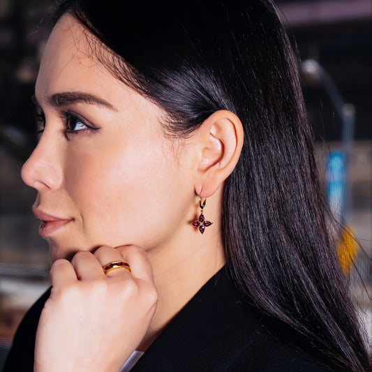 14k Garnet Chandelier Huggie Hoop Dangle Earring