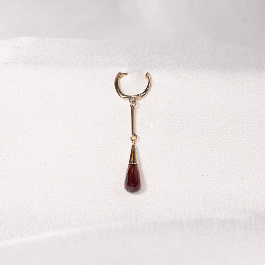 14k Garnet Gold Bar Huggie Hoop Dangle Earring