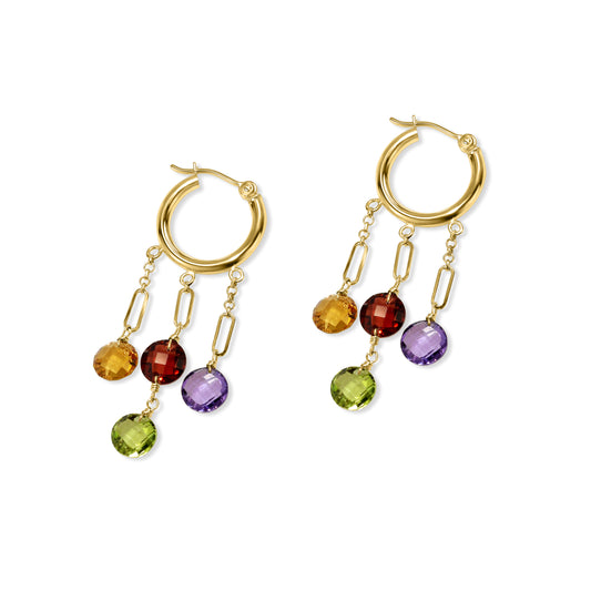 14k Multi Gemstone 3-Line Drop on Hoop Earring