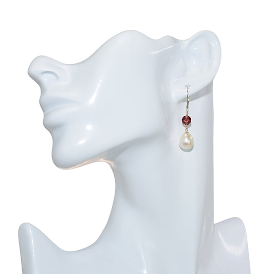 14k Gemstone & White Freshwater Pearl Leverback Earring