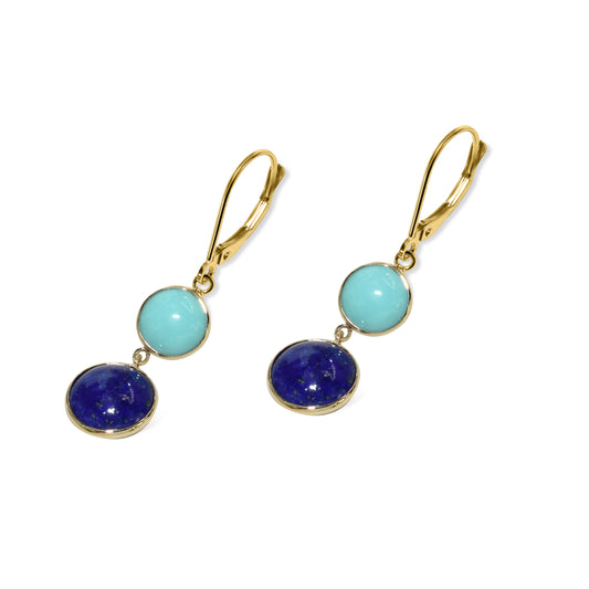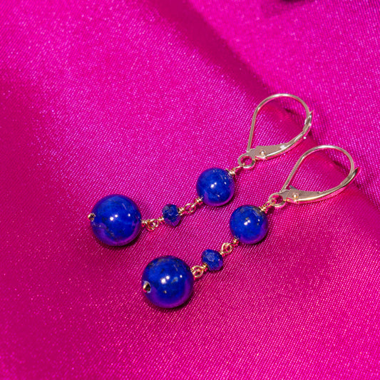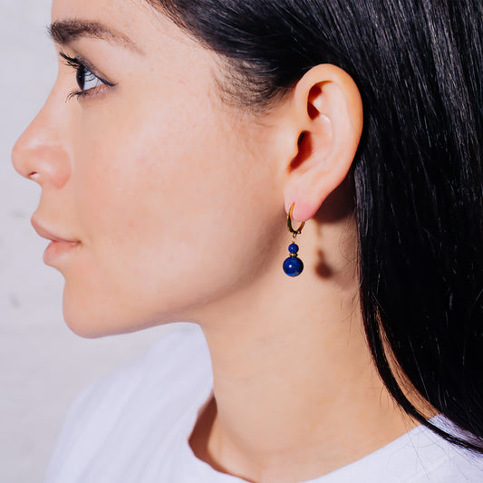 14k Lapis Dual Ball Huggie Hoop Drop Earring