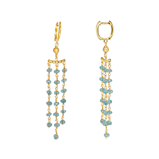 14k Gemstone Roundel 3 Row Link Chandelier Huggie Hoop Earring