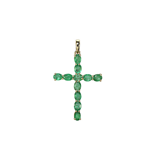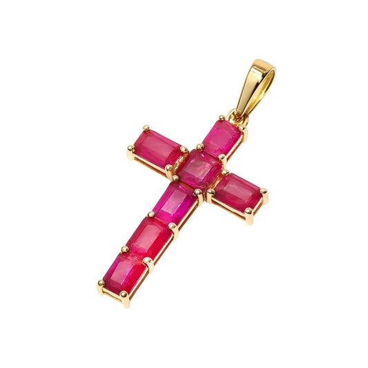 14k Cross Pendant with 7 Prong-Set Gemstones