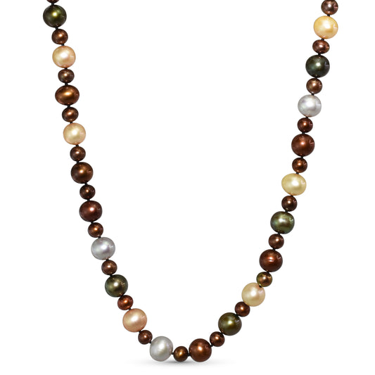 14k Multi Chocolate Brown Pearl Knotted Necklace