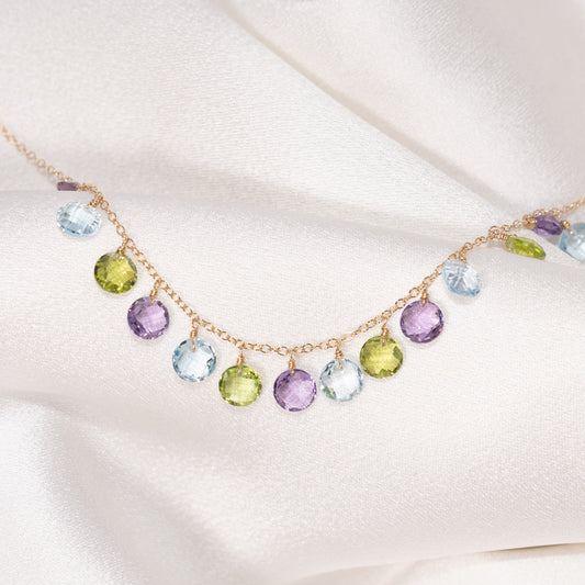 14k Peridot, Amethyst, and Sky Blue Topaz Coin Drop Necklace