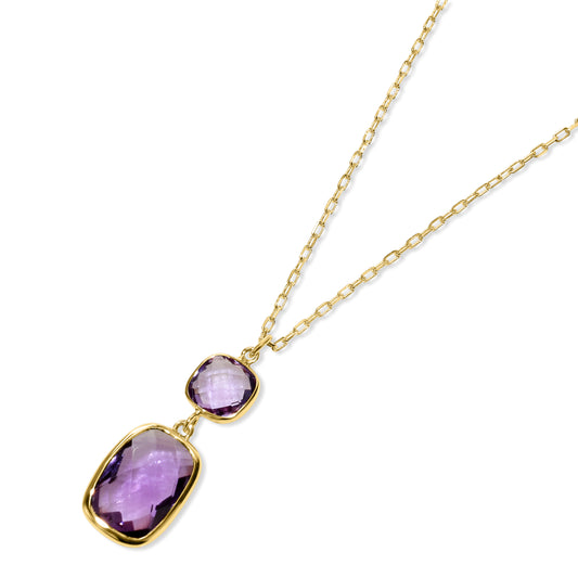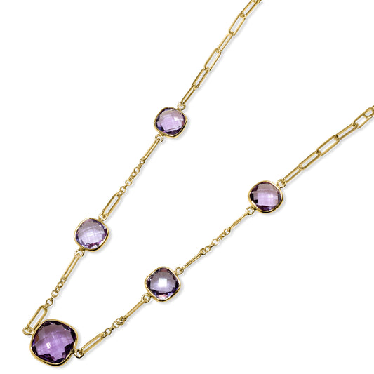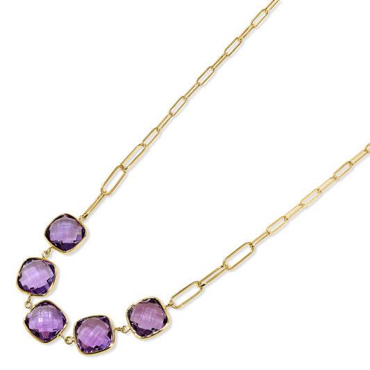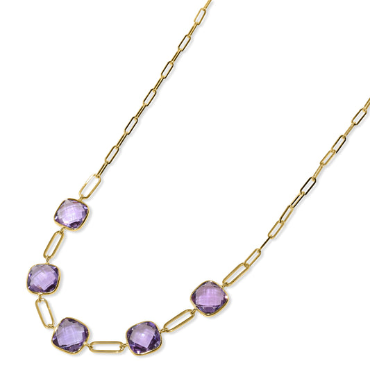 14k Amethyst 5 Cushion Station Paperclip Necklace