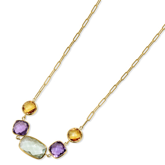 14k Multi Gemstone 5 Bezel Paperclip Necklace