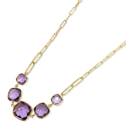 14k Amethyst 5 Cushion Bezel Paperclip Necklace