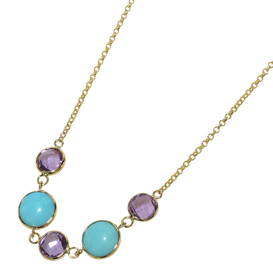 14k Multi Gemstone 5 Round Bezel Station Necklace