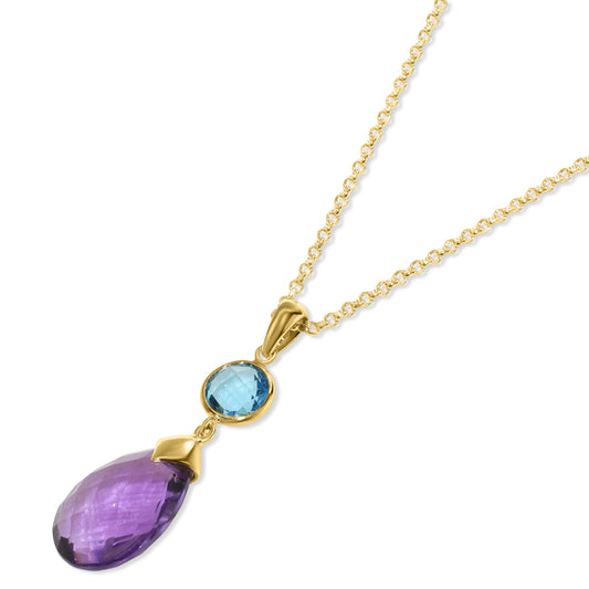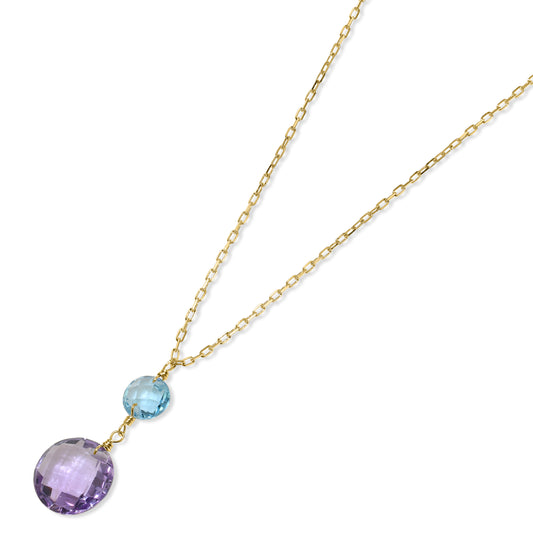 14k Swiss Blue Topaz Amethyst Pendant Necklace