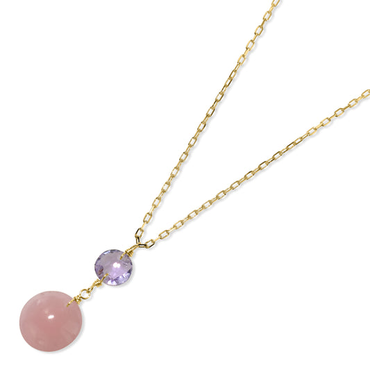 14k Amethyst Guava Quartz Coin Pendant Necklace