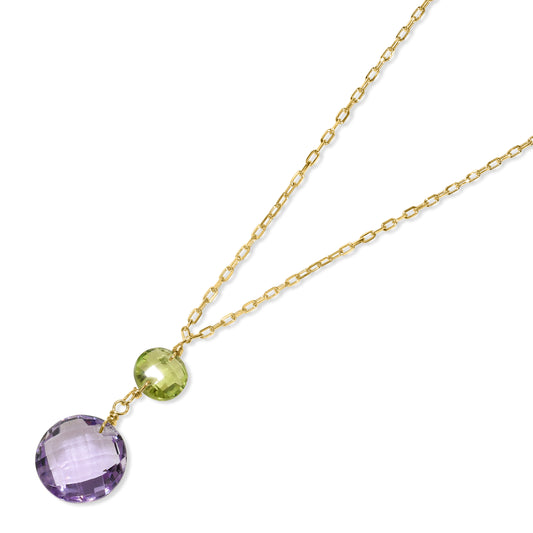 14k Peridot Amethyst Coin Pendant Necklace