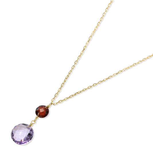 14k Garnet Amethyst Coin Pendant Necklace