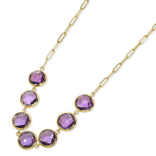 14k Amethyst 7 Round Bezel Necklace