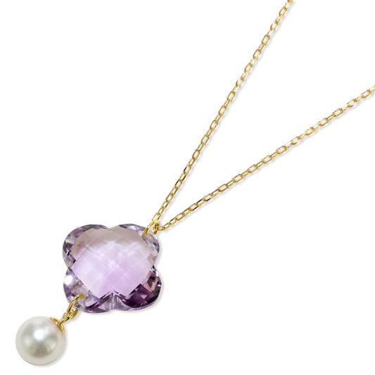 14k Amethyst Clover Pearl Pendant Necklace