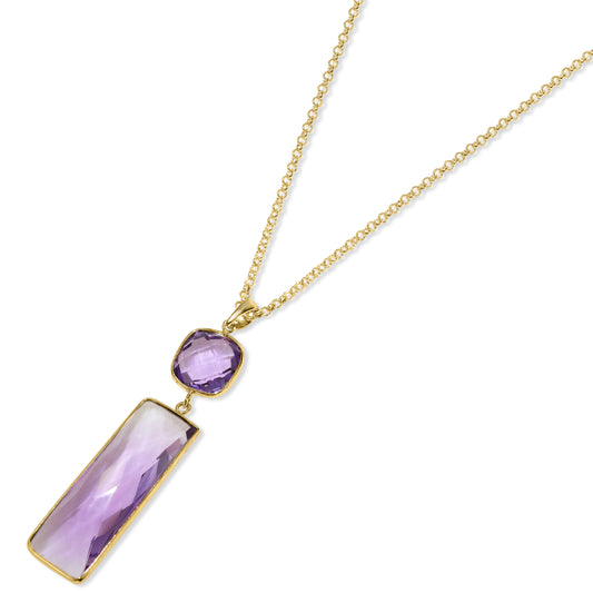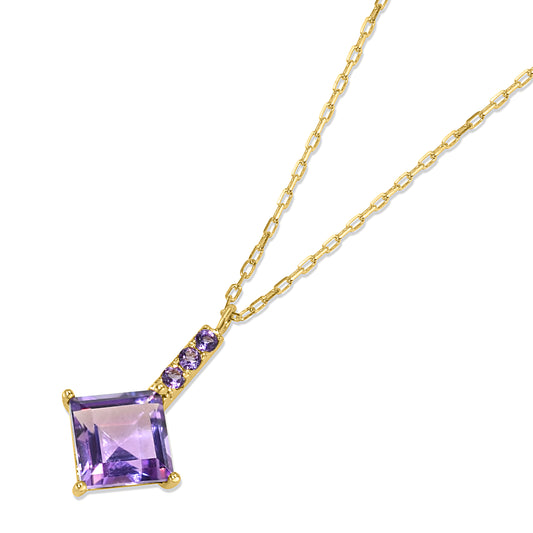 14k Amethyst Square Bar Pendant Necklace