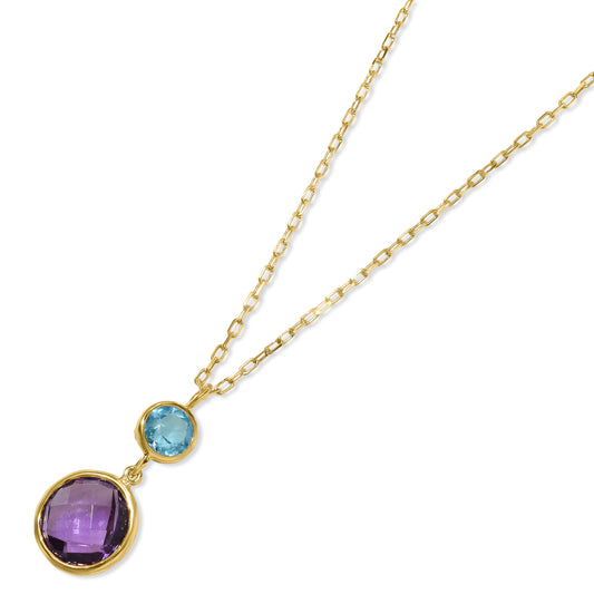 14k Swiss Blue Topaz Amethyst Pendant Necklace