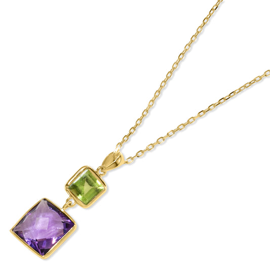 14k Peridot Amethyst Square Pendant Necklace