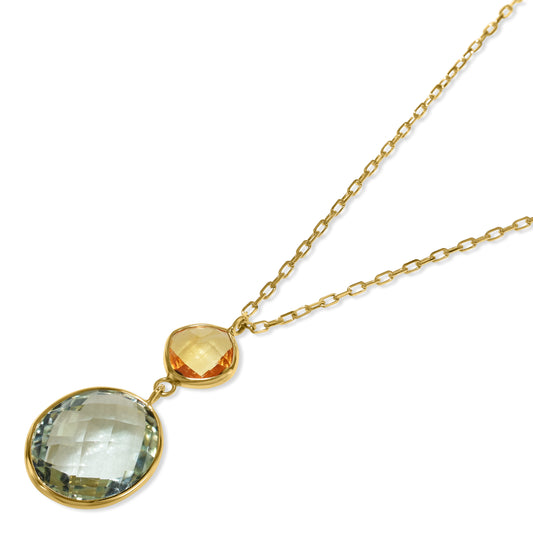 14k Citrine Green Amethyst Pendant Necklace