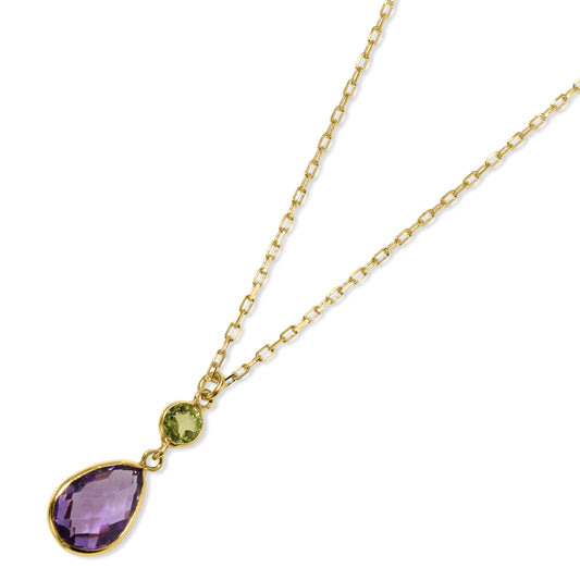 14k Peridot Amethyst Pendant Necklace
