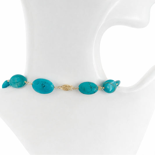 14k Turquoise Flat Oval Link Necklace