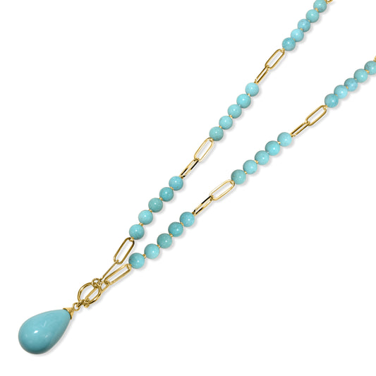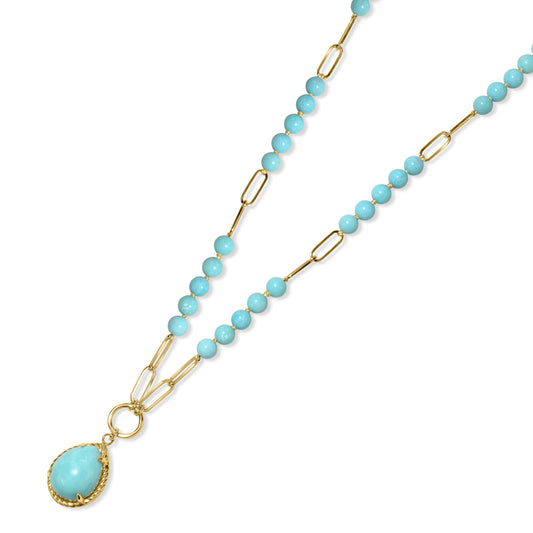 14k Turquoise Faceted Beads and Pear Pendant Necklace
