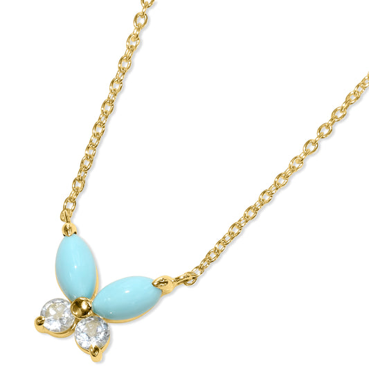 14k Swiss Blue Topaz Turquoise 7 Station Necklace