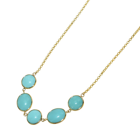 14k Turquoise Round Oval 1x1 5 Piece Link Necklace