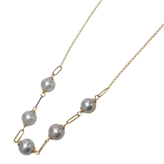 14k Grey Pearl 5 Piece Paperclip Link Necklace