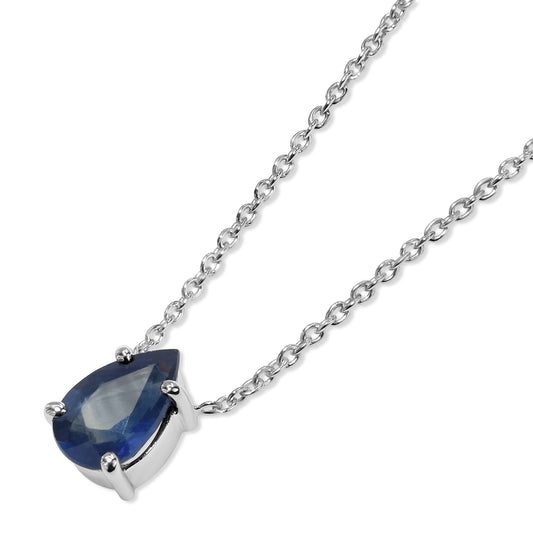 14k White Gold Pear Shaped Pendant Sapphire Necklace