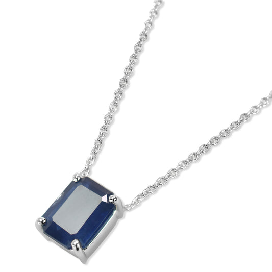 14k White Gold Rectangle Shaped Sapphire Necklace