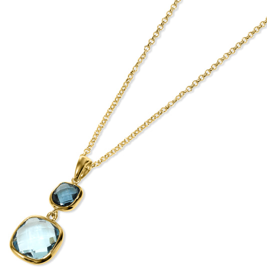 14k London & Sky Blue Topaz Cushion Pendant Necklace