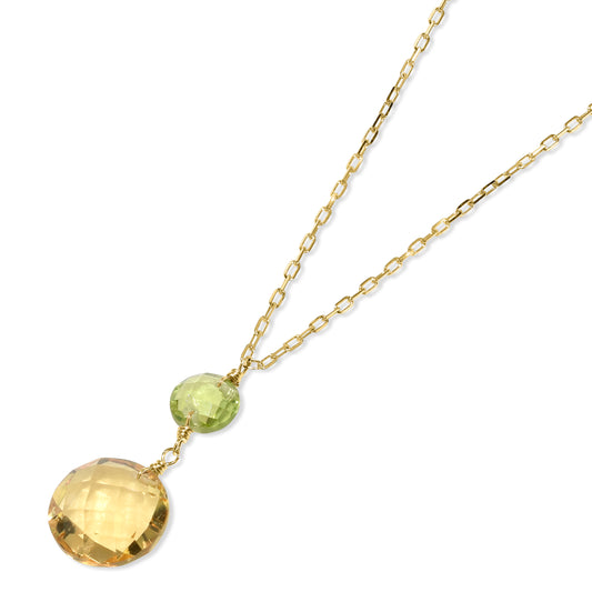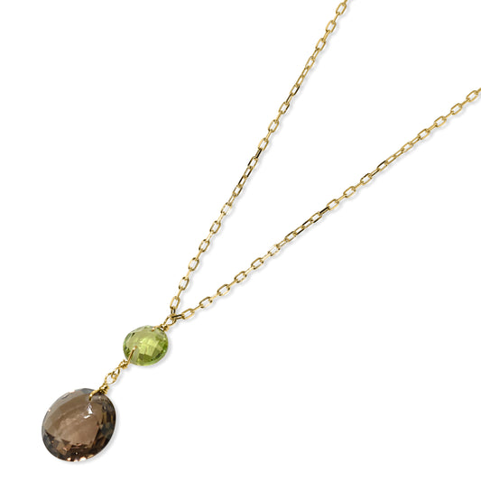 14k Peridot Smoky Quartz Coin Pendant Necklace