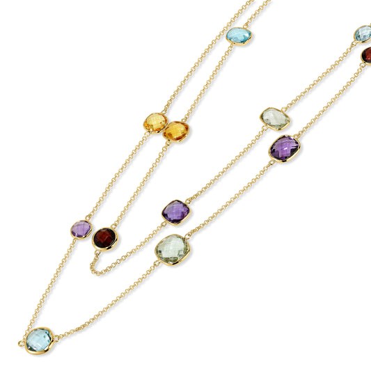 14k Multi Gemstone Mixed Shape 15 Bezel Necklace