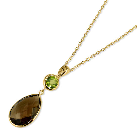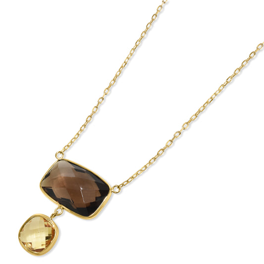 14k Smoky Quartz Citrine Cushion Pendant Necklace