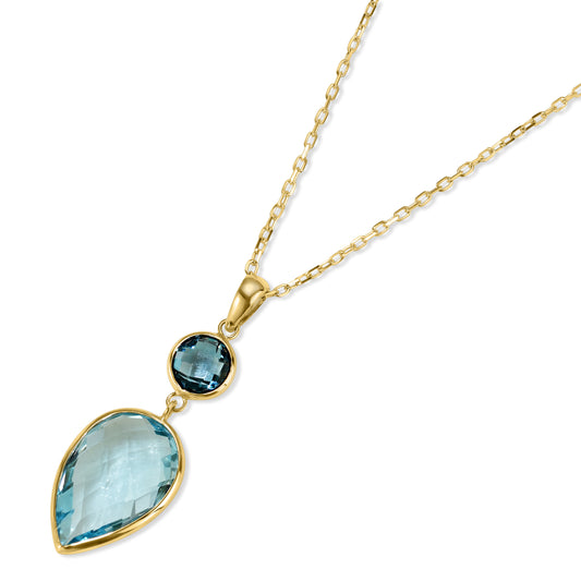 14k Swiss and Sky Blue Topaz Pendant Necklace