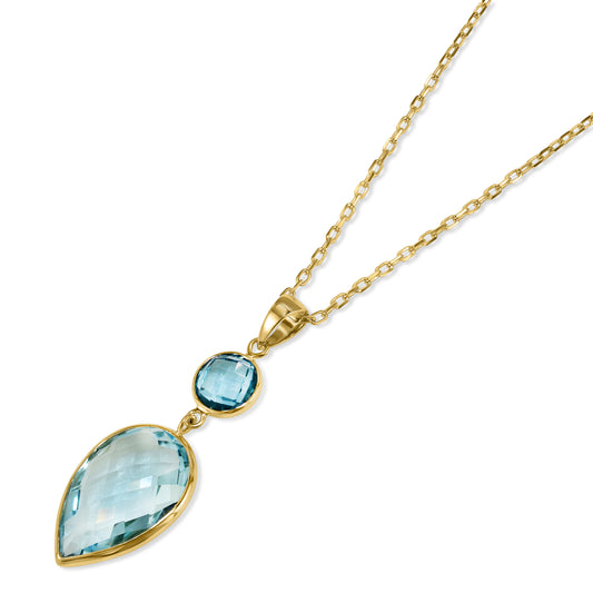 14k Amethyst Blue Topaz Pear Pendant Necklace