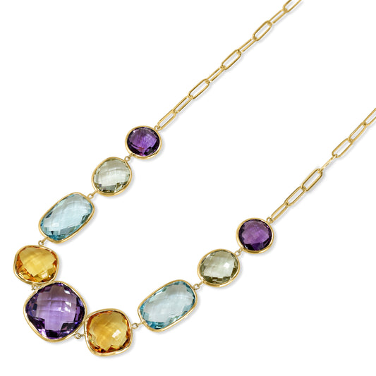 14k Multi Gemstone Graduated Round Bezel Paperclip Chain