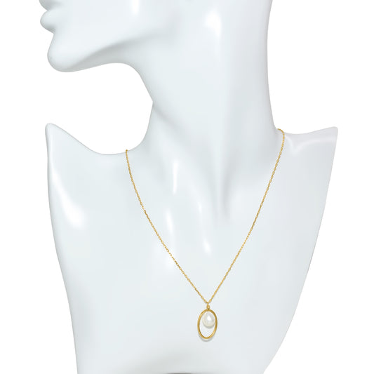 14k White Freshwater Pearl Oval Halo Pendant Necklace
