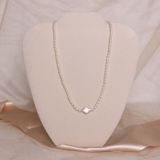 Sterling Silver White Freshwater Pearl with Silver Bead Center Necklace