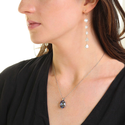 14k White Gold Blue Topaz Necklace