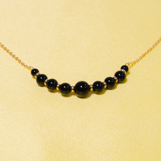 14k Black Onyx White Freshwater Pearl Station Necklace