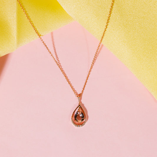 14k Rose Gold Vs Diamond Morganite Pear Shape Pendant Necklace