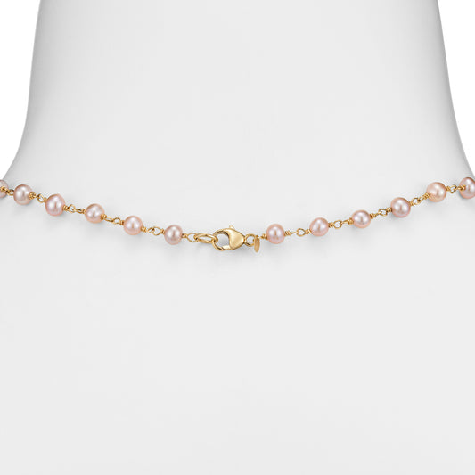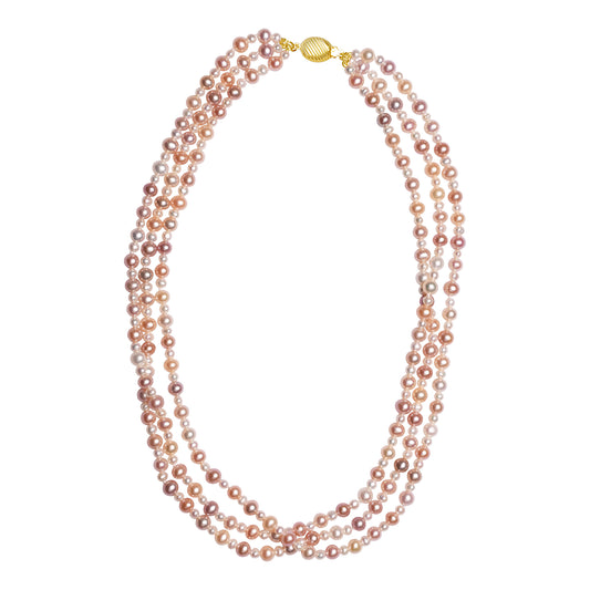 14k Multi Pink White Freshwater Pearl 3-row Necklace