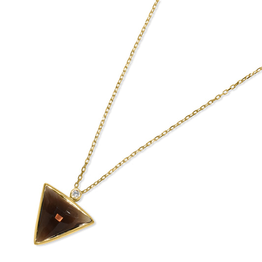 14k Smoky Quartz Triangle Diamond Pendant Necklace