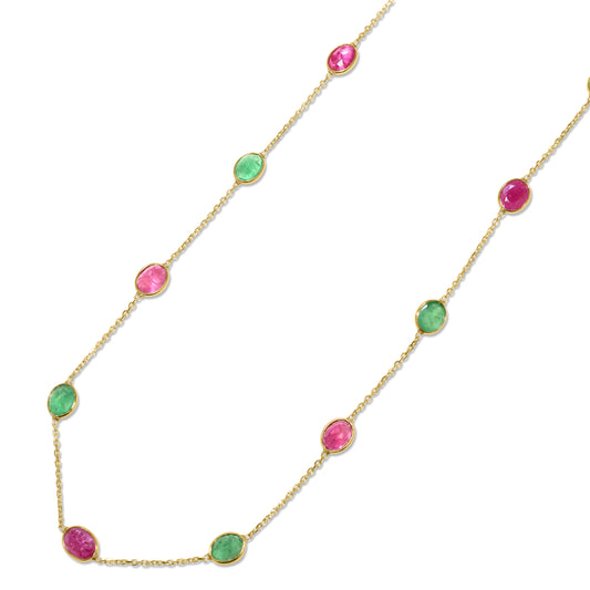 14k Multi Gemstone Triple Round Bezel Pendant Necklace