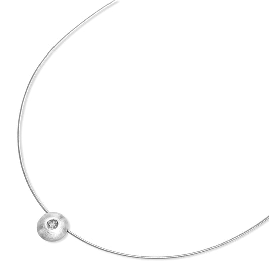 14k White Gold Cable Wire Diamond Round Slider Necklace