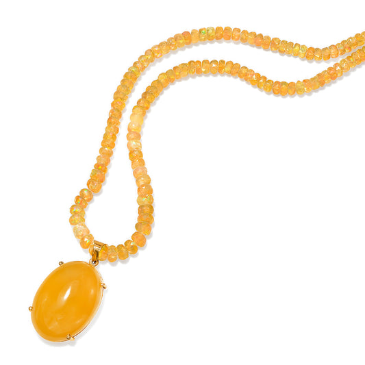 14k Chalcedony Bezel Sapphire Bead Necklace