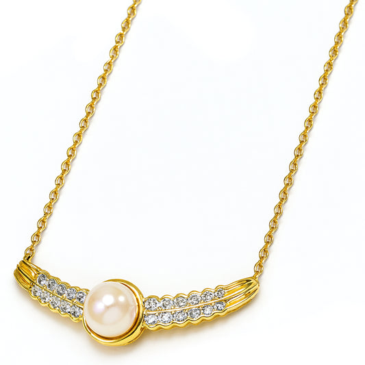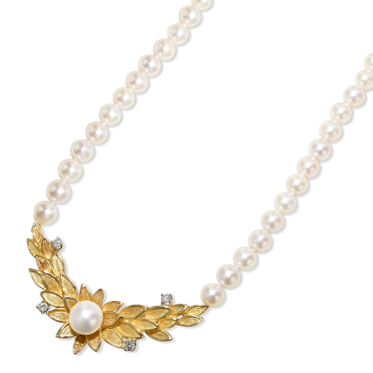 18k Japan Akoya Cultured Pearl Diamond Motif V Shape Necklace