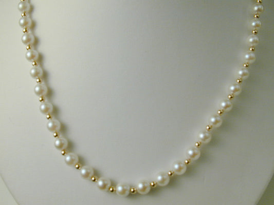 14k Japanese Cultured Pearl Gold Bead Necklace